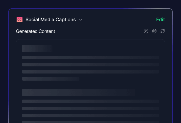 From blog posts to social media captions, our content generator is your all-in-one writing companion. Explore the versatility of AI-powered content creation for all platform.